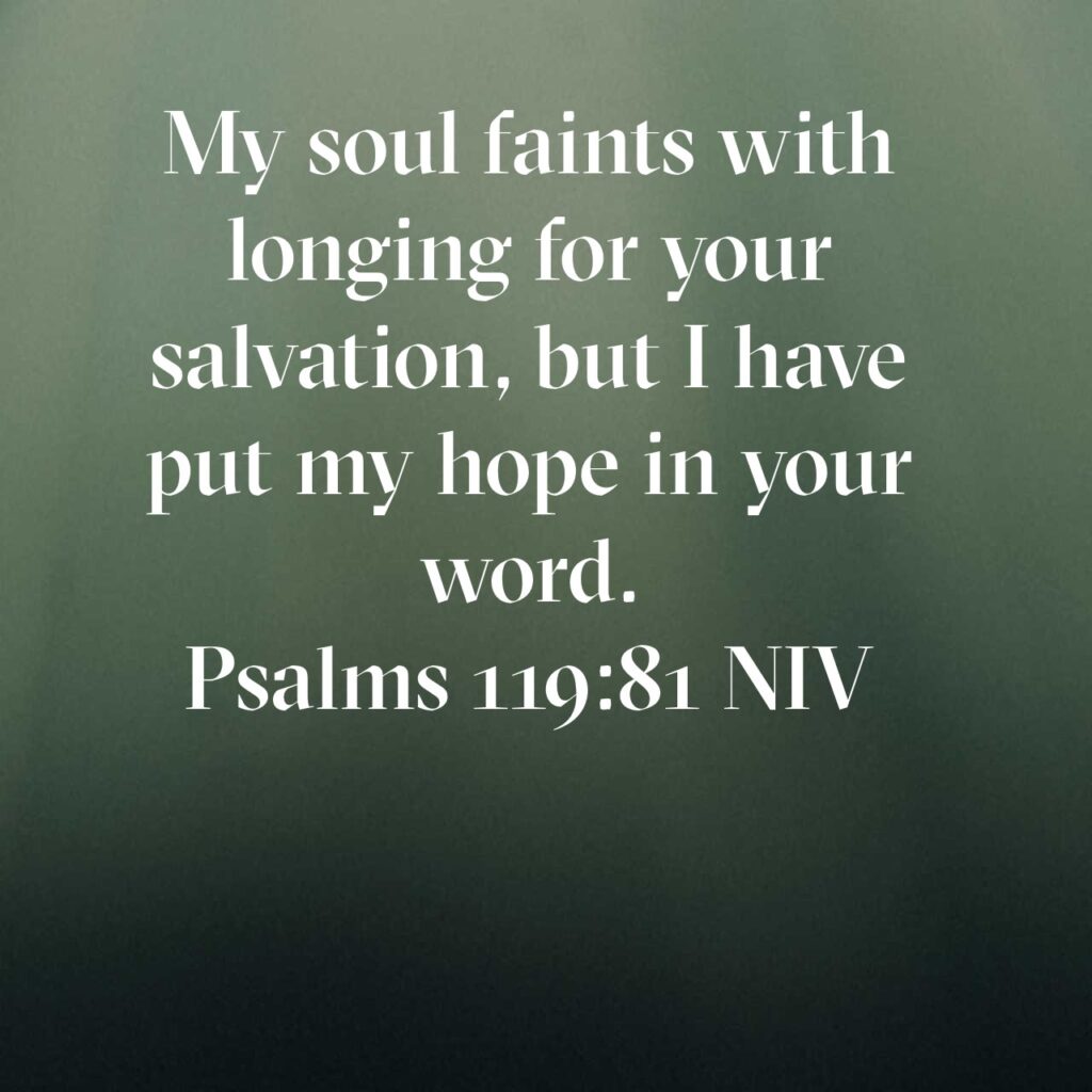Life can be very difficult and challenging. We can experience trials and struggles. There are several situations that we will face in our lives that are hard. We know that God is going to provide salvation, but it can be hard to wait for that. The psalmist knows this. He expresses the same frustration that we often feel many days. We know what it is to have our heart feel faint. Still we have hope.