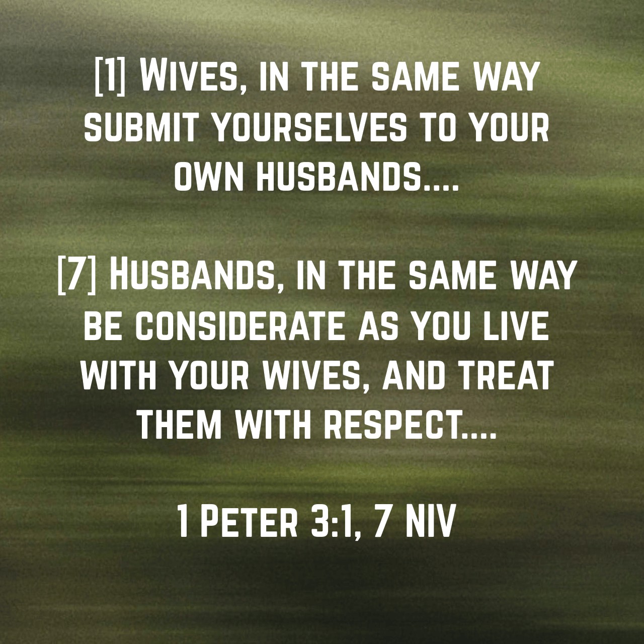 Submission. Read 1 Peter 3:1-7.